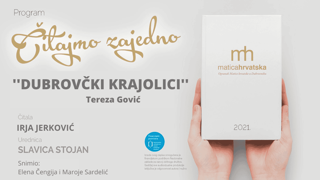 Donosimo Vam deseti nastavak programa Čitajmo zajedno, u kojem će Irja Jerković pročitati ulomke iz knjige ”Dubrovački krajolici” dubrovačke spisateljice Tereze Gović. Čita: Irja Jerković Urednica programa: Slavica Stojan Snimili: Elena Čengija i Maroje Serdelić