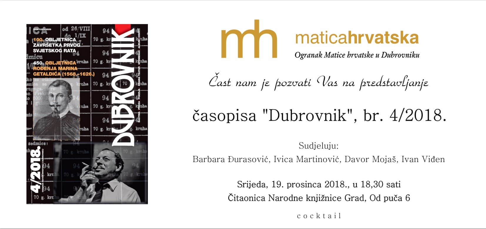 Predstavljanje časopisa Dubrovnik br.4/2018.
