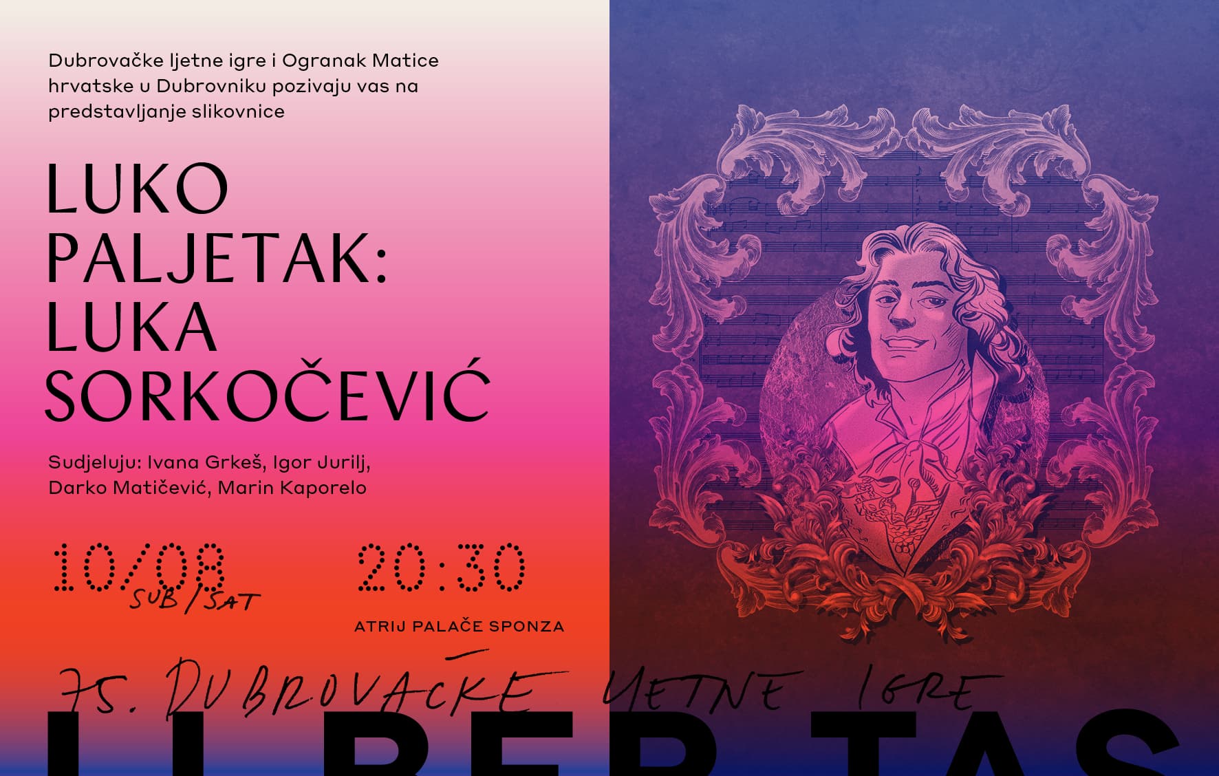 U suradnji Ogranka Matice hrvatske u Dubrovniku i Dubrovačkih ljetnih igara objavljena je slikovnica ”Luka Sorkočević” povodom 290. godine rođenja dubrovačkog skladatelja i poklisara Dubrovačke Republike.Tekst slikovnice napisao je naš veliki književnik i akademik Luko Paljetak, a za njeno oslikavanje zaslužan je ilustrator Igor Jurilj – Yellow Juri. Ovim putem pozivamo Vas na predstavljanje slikovnice...Opširnije→