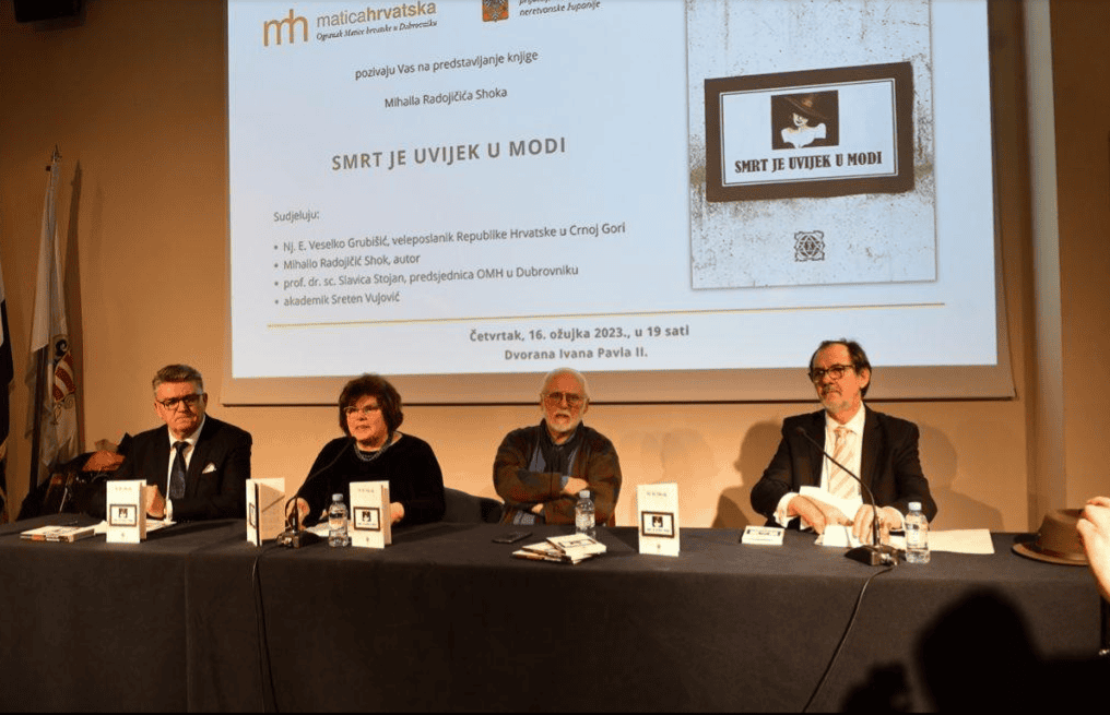 U četvrtak, 16. ožujka 2023., u Dvorani Ivana Pavla II., predstavljena je knjiga Mihaila Radojičića Shoka ”Smrt je uvijek u modi”. Crnogorski pisac, scenarist i glumac Mihailo Radojičić Shok nosio je u sebi, kako je rekao „dvadesetipet godina kao biljeg na duši“ sramnu i tragičnu istinu o agresiji na susjednu Hrvatsku, na Dubrovnik i njegovu...Opširnije→