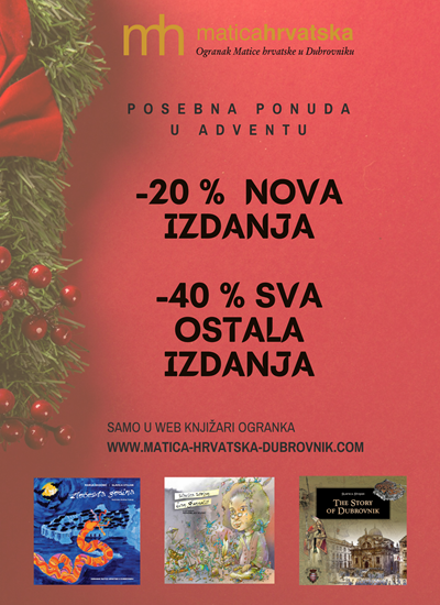 U adventskim danima, OMH U DUBROVNIKU pripremio je posebnu ponudu za sve čitatelje ; 20% popusta na najnovije naslove The Story of Dubrovnik i slikovnica “Ivan Gundulić” i “Zločesta godina” te 40% na sva ostala izdanja.