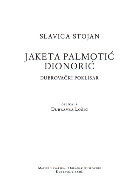 Slavica Stojan – Jaketa Palmotić Dionorić: dubrovački poklisar