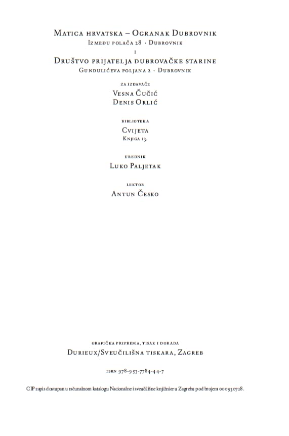 - izdavač: Ogranak Matice hrvatske u Dubrovniku